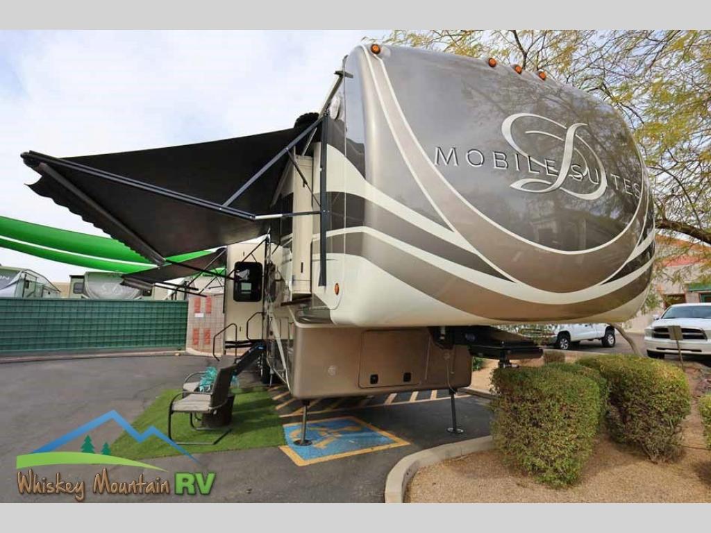 THIS TWO OWNER, 2019 DRV MOBILE SUITES 38 RSSA, IS ONE OF DRV'S MOST MOST RARE FLOOR PLANS. IT'S MAIN FEATURE IS THAT YOU DON'T HAVE TO OPEN ANY SLIDES TO GAIN ACCESS TO FRIDGE, BATHROOM OR BEDROOM. IT HAS A HUGE KITCHEN WITH CENTER ISLAND, LARGE PANTRY AND A KING BED MASTER SUITE WITH A LARGE HALLWAY BATHROOM WITH A RECTANGULAR SHOWER. .