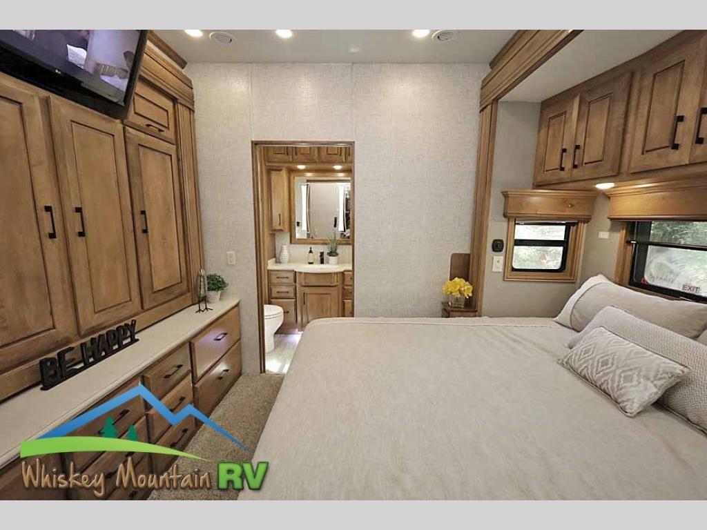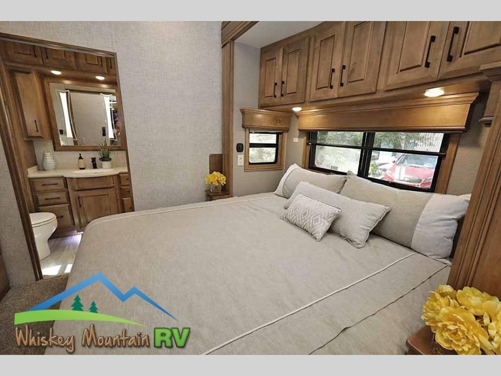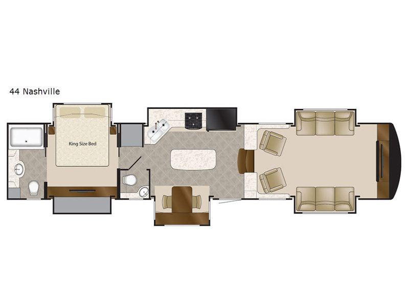 DRV'S NASHVILLE IS A RELATIVELY RARE AND A VERY DESIRABLE FLOOR PLAN WITH A HUGE FRONT LIVINGROOM THAT SITS 6, SLEEPS 4, A SEPARATE KITCHEN, WASHER / DRYER HALLWAY CABINET, HALLWAY HALF BATH, HUGE KING BED BEDROOM WITH A CEILING FAN AND REAR ENSUITE WITH AN 8' CEILING.