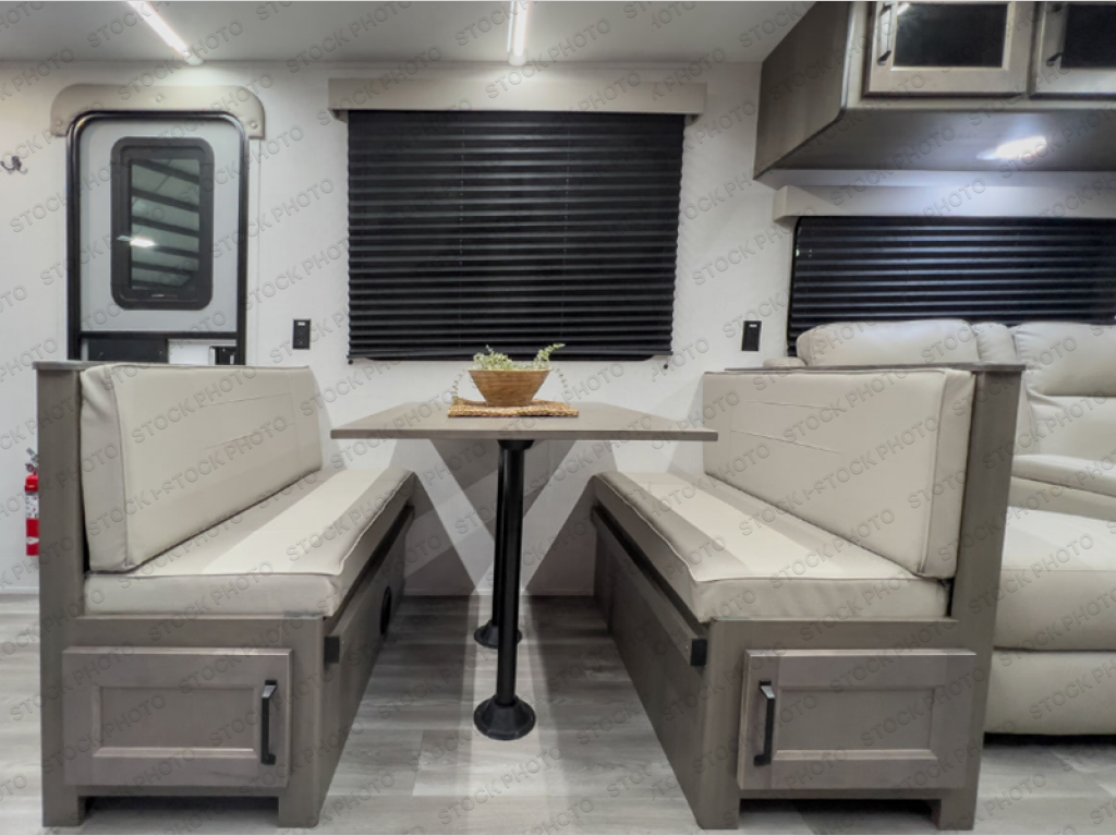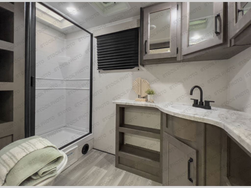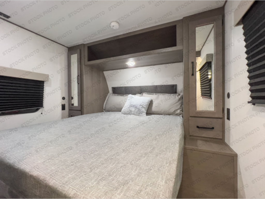 Your search for the perfect couple's trailer is over! You will enjoy your own private bedroom up front with a queen bed with overhead storage. The spacious full rear bath includes a linen closet and a walk-in shower to easily clean up each day. Relax on the theatre seating after a long day outdoors. The booth dinette can also be used for an overnight guest or two little ones. This model also includes plenty of storage space and plenty of counter space to prep and cook at-home meals!